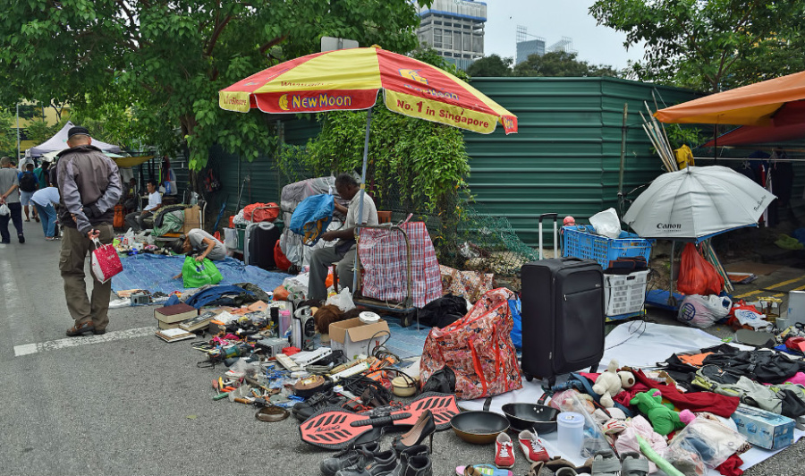 Sungei Road Thieves Market Singapore. This is Singapores oldest flea market dating back to the 1930s and covers the expanse between Kelantan Road and Weld Road. Good for a sunny day.